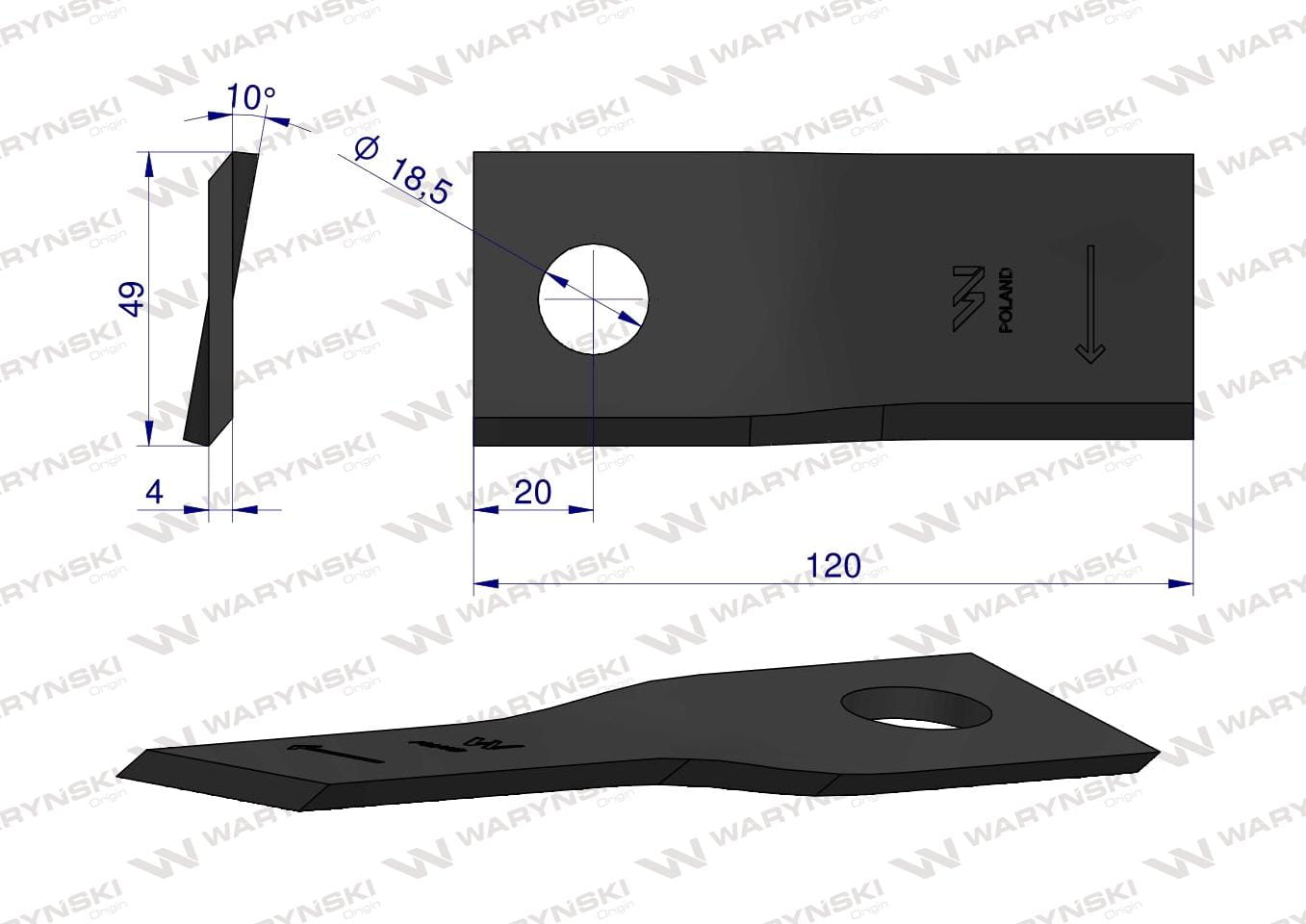 Nóż nożyk kosiarka 120X48X4X18,5 prawy zastosowanie 111725 Fella WARYŃSKI