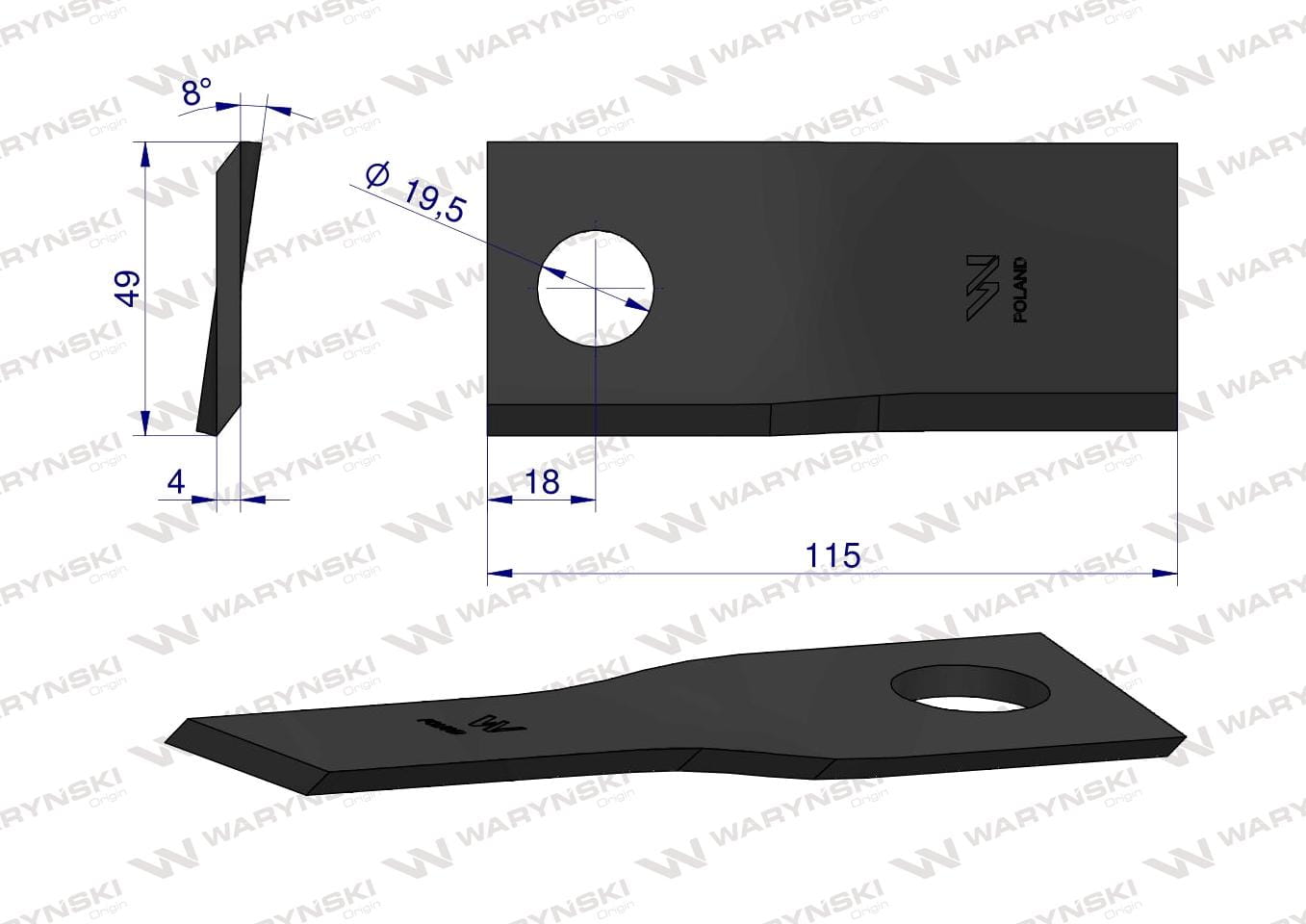Nóż nożyk kosiarka dyskowa 115x49x4mm (12P+12L) zastosowanie Samasz WARYŃSKI ( sprzedawane po 24. 12P+12L )