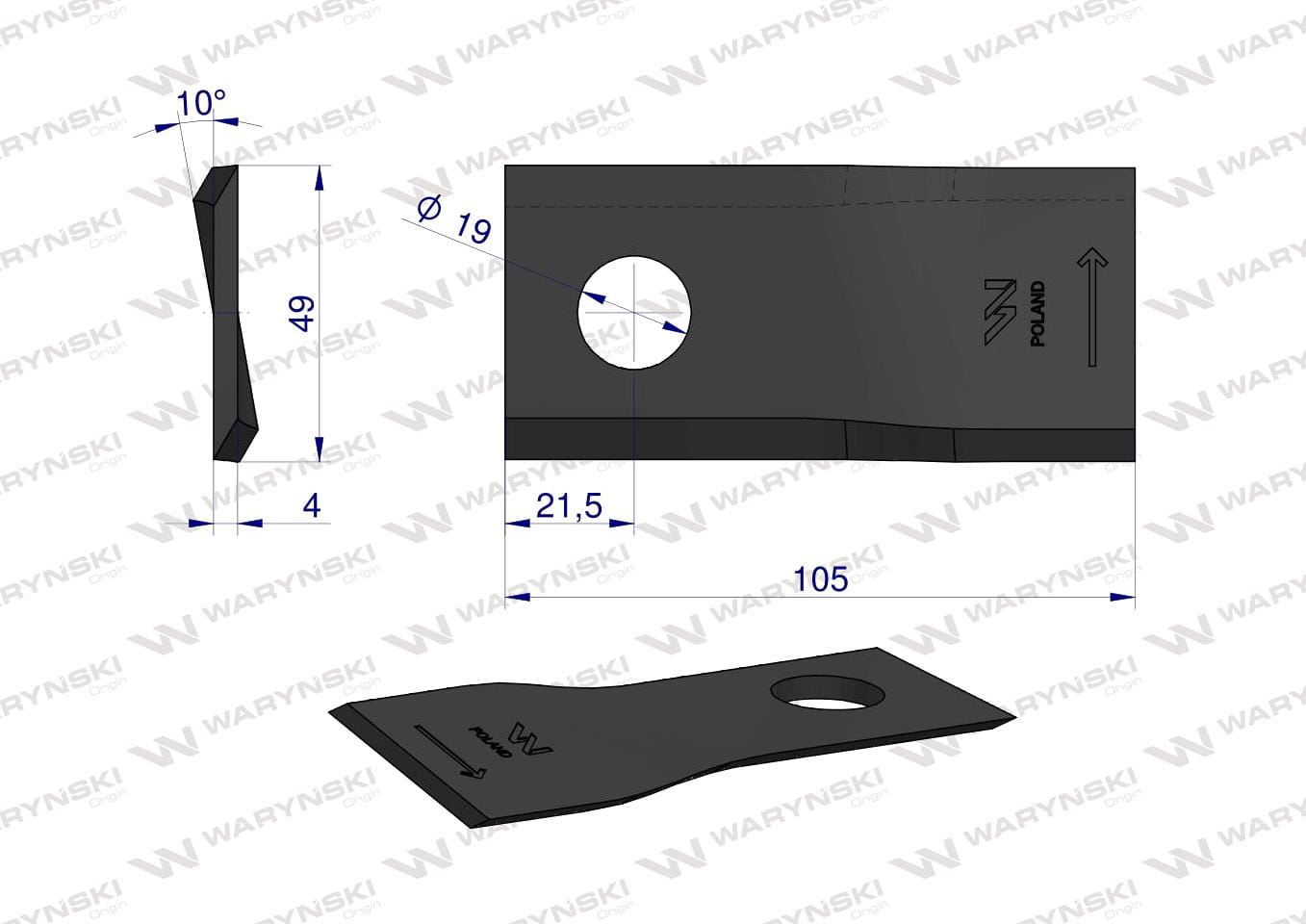 Nóż nożyk kosiarka lewy 105x48x4mm otwór 19 zastosowanie 9492421 Claas WARYŃSKI