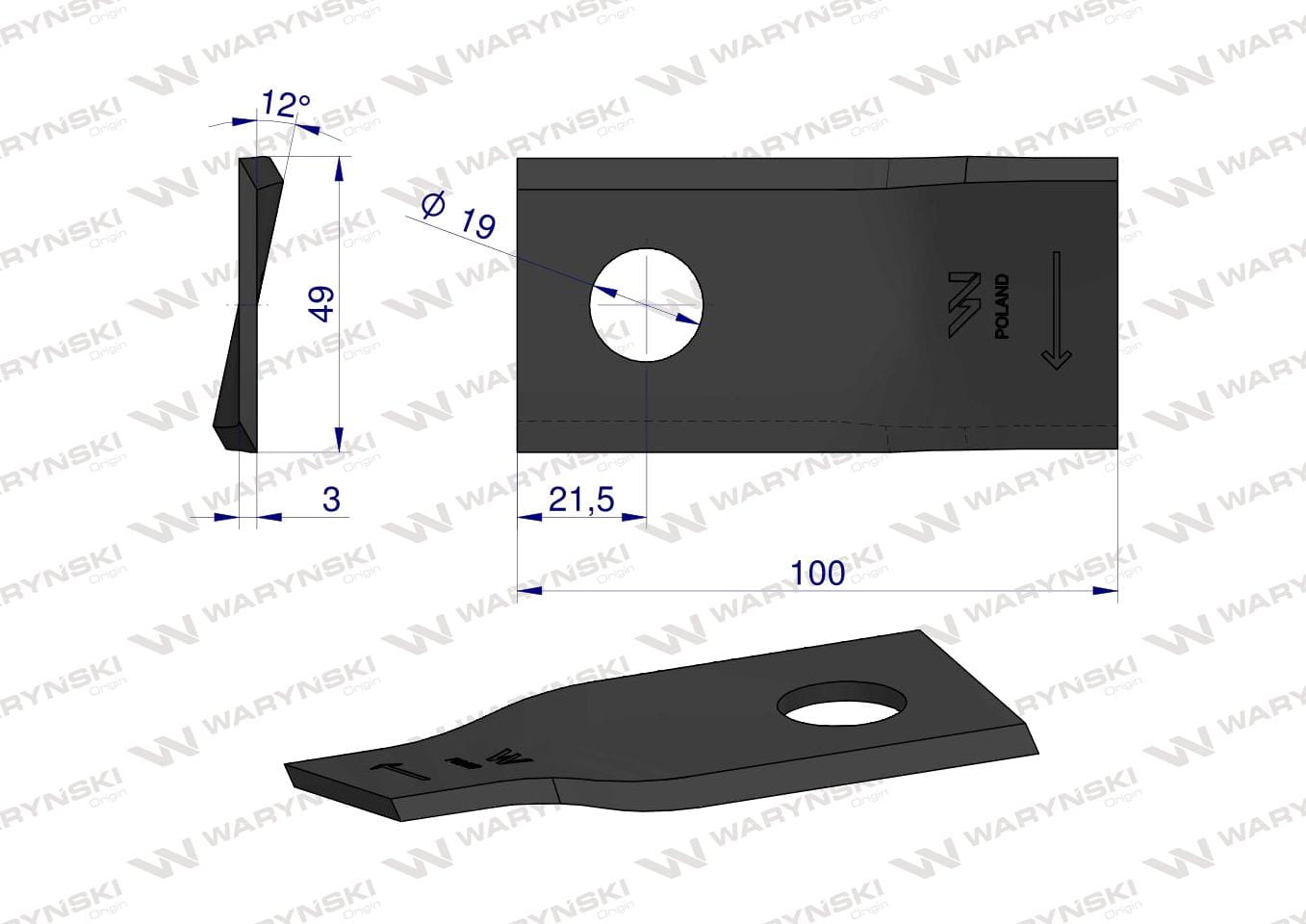 Nóż nożyk kosiarka prawy 100x48x3mm otwór 19 zastosowanie 9041777 9527280 Claas WARYŃSKI ( sprzedawane po 25 )