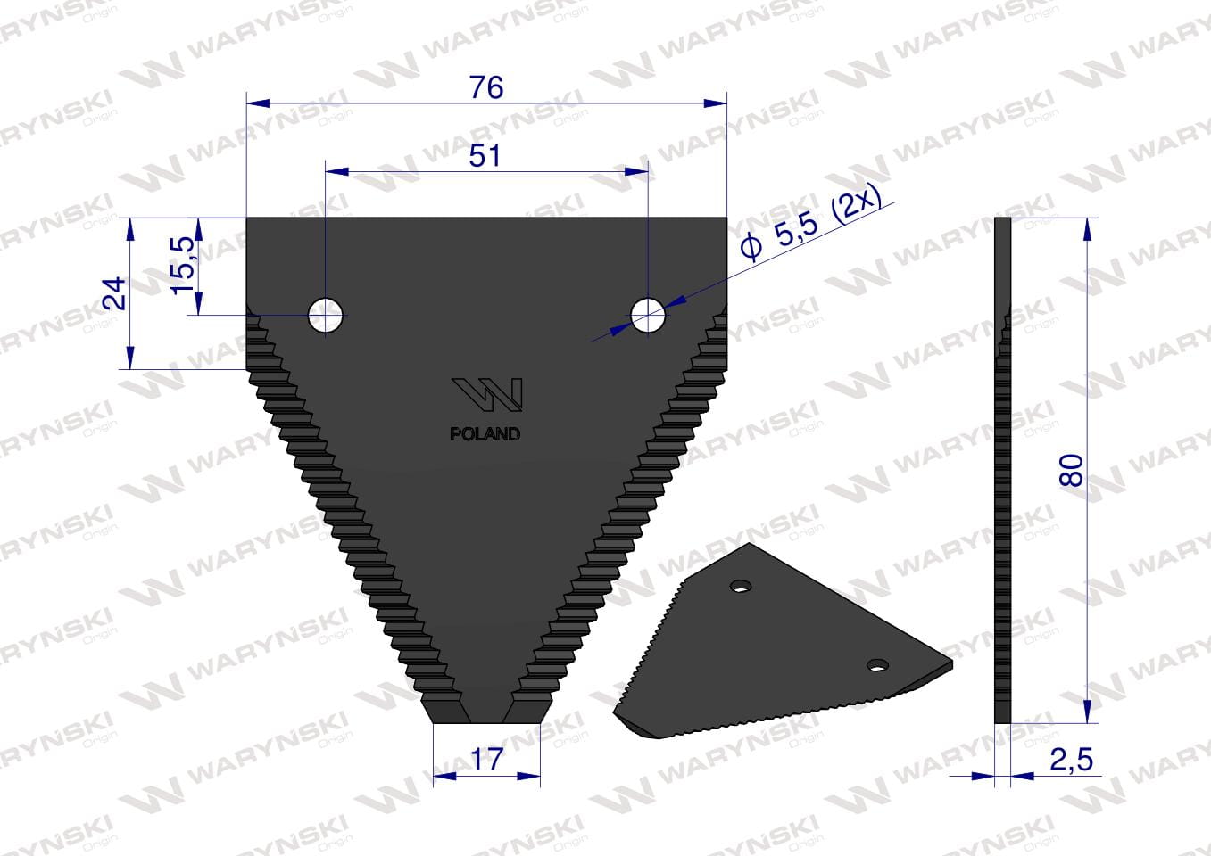 Nóż nożyk listwy nożowej Bizon 506000001 ząbkowanie na wierzchu WARYŃSKI