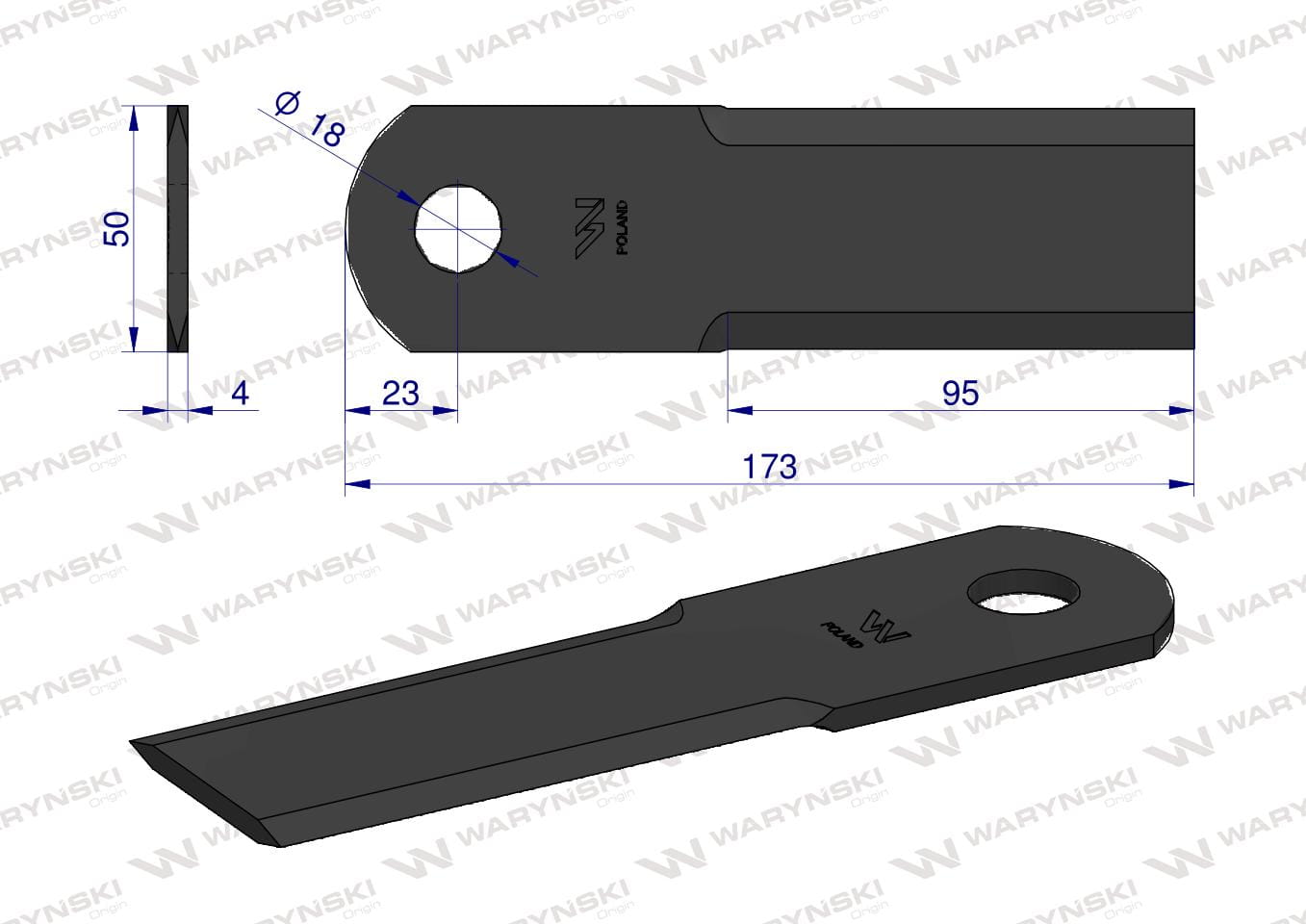 Nóż obrotowy rozdrabniacz słomy sieczkarnia 173x50x4mm otwór 18 zastosowanie 746813 New Holland WARYŃSKI