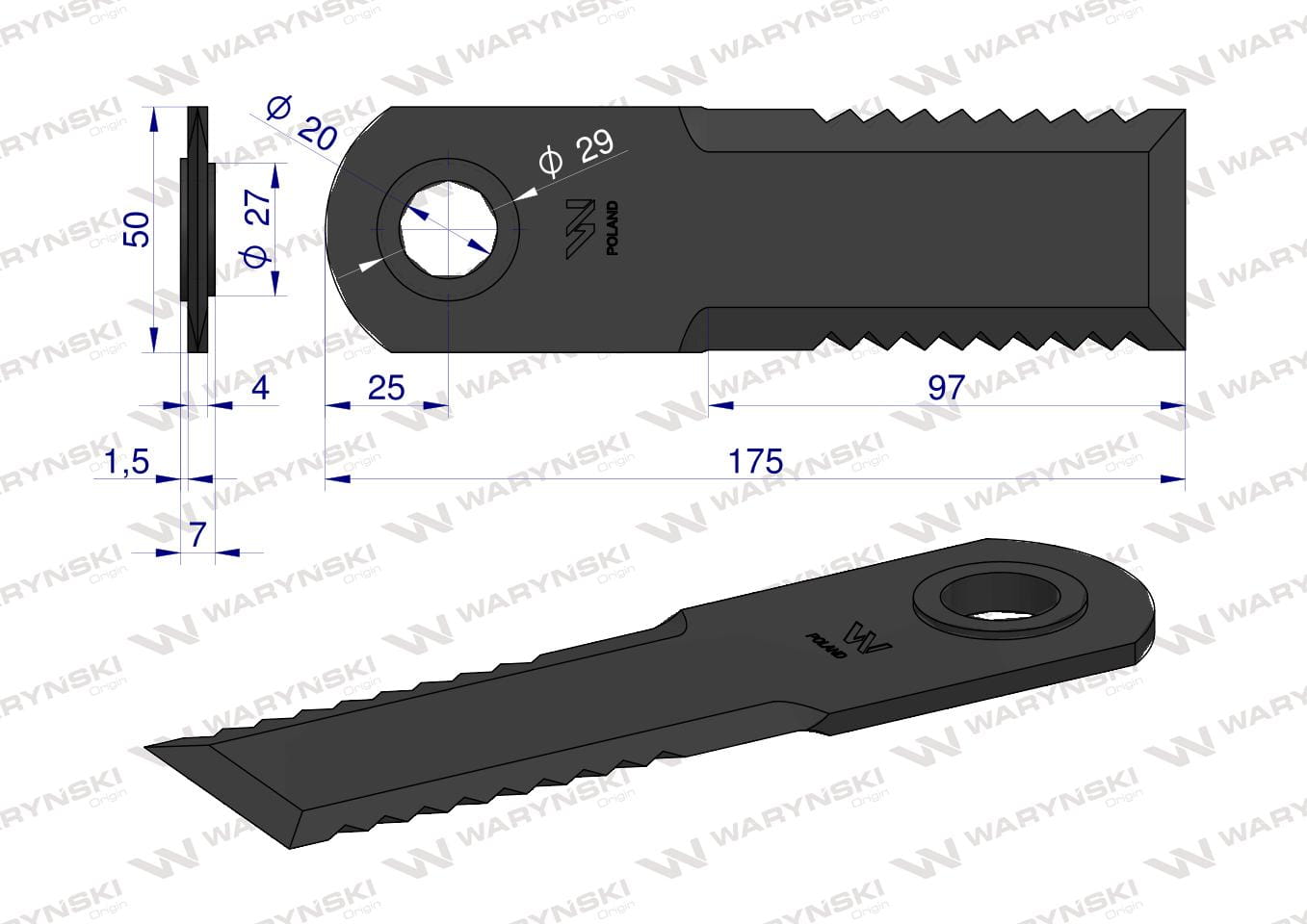 Nóż obrotowy rozdrabniacz słomy sieczkarnia 175x50x4mm otwór 20 zastosowanie 7558750 Claas WARYŃSKI ( sprzedawane po 25 )