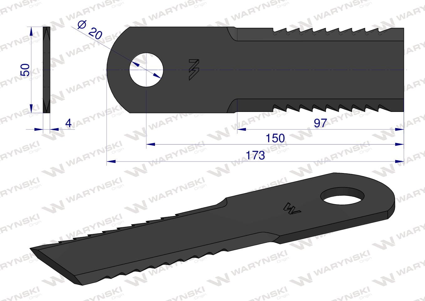 Nóż obrotowy rozdrabniacz słomy sieczkarnia uzębiony 173x50x4mm otwór 20 zastosowanie 755784.0 Claas Lexion WARYŃSKI