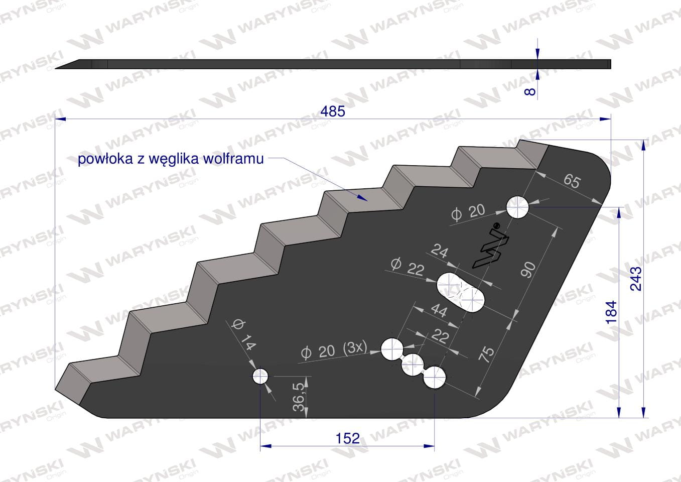 Nóż paszowozu ostrzony od góry zastosowanie Sano Mayer z węglikiem wolframu Waryński