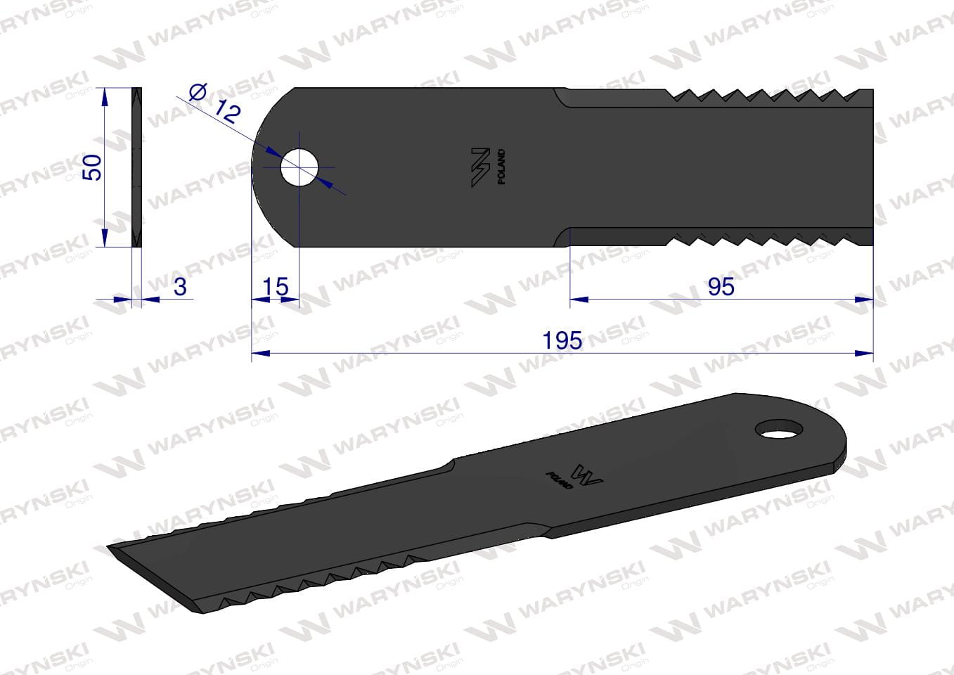 Nóż stały rozdrabniacz słomy sieczkarnia 195x50x3mm otwór 12 zastosowanie 746813 Claas WARYŃSKI