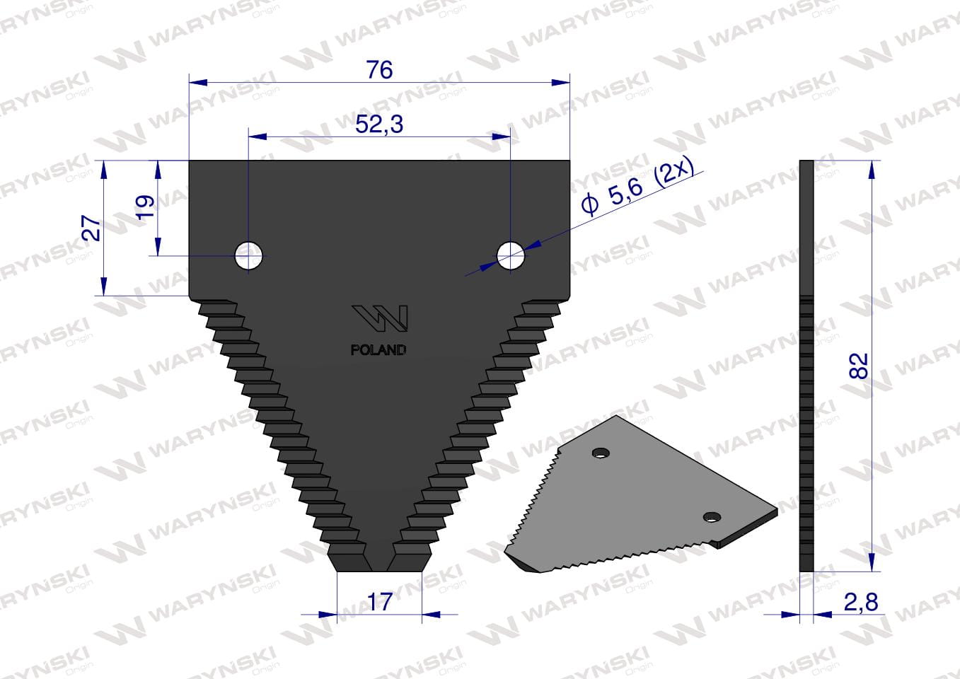 Nóż żniwny 82x76x2.8mm otwór 5.5 grube zęby zastosowanie 365110G New Holland WARYŃSKI ( sprzedawane po 25 )