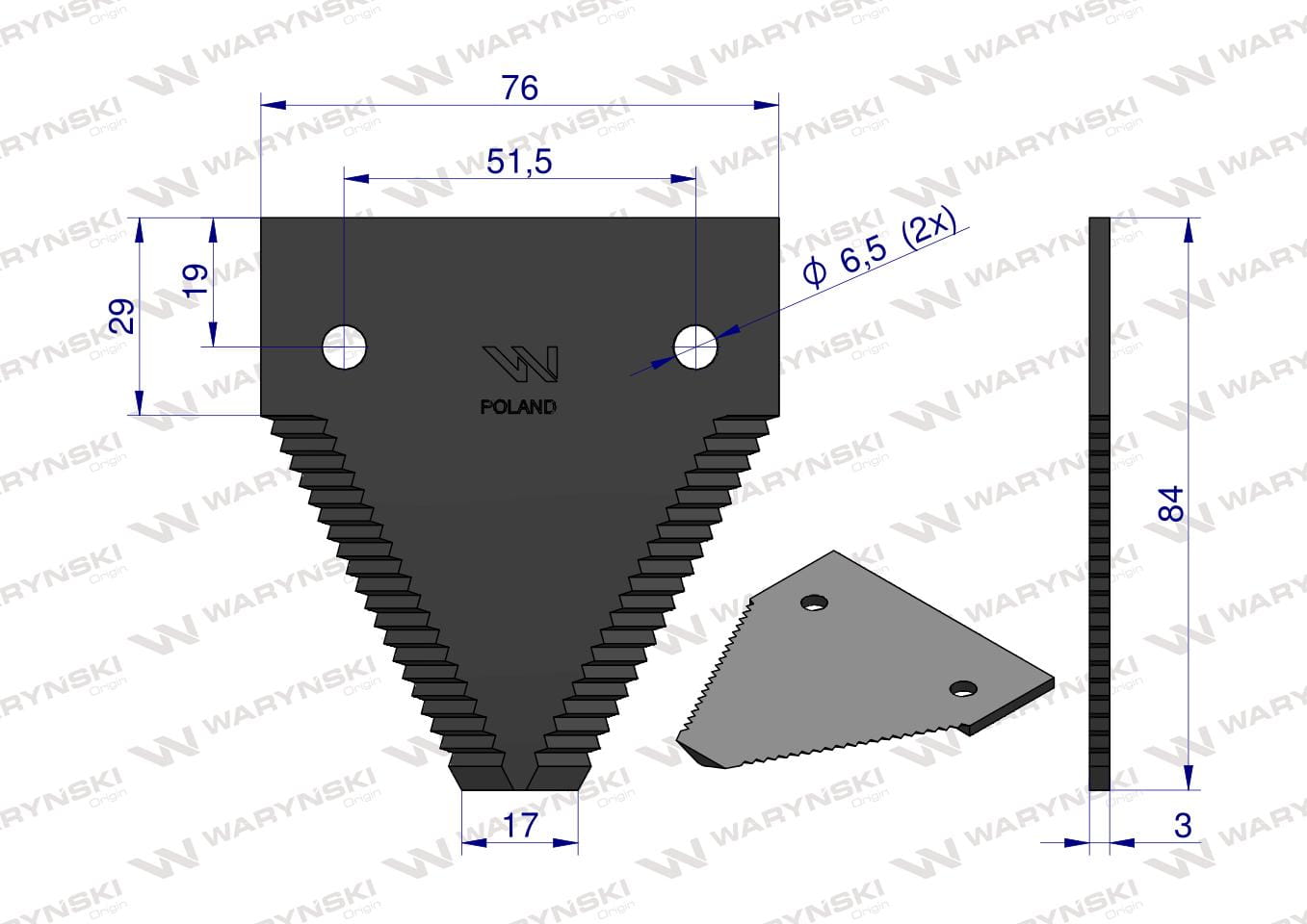 Nóż żniwny Claas 84x76x3mm otwór 6.5 611203.1 WARYŃSKI