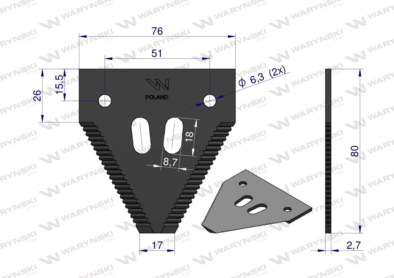 Nóż żniwny ostrza ząbkowane na wierzchu 420100045 Schumacher John Deere Deutz Fahr WARYŃSKI