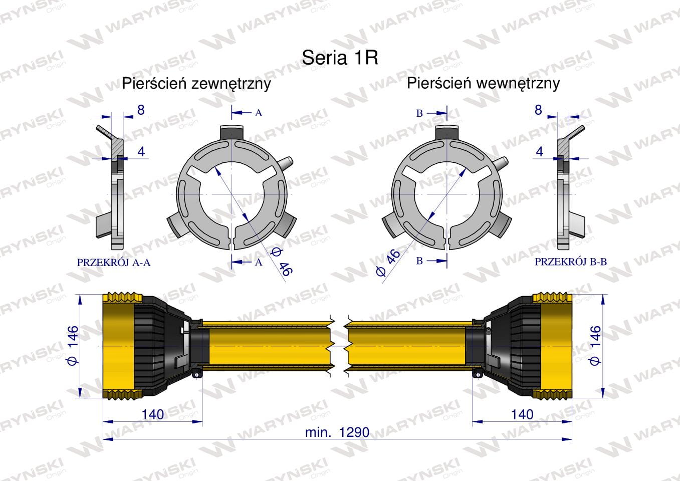 Obudowa wału przegubowo-teleskopowego Uniwersalna długość Seria 1R WARYŃSKI