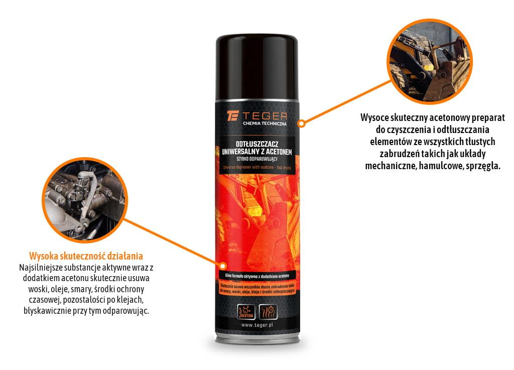 Odtłuszczacz uniwersalny z acetonem - szybko odparowujący 500 ml TEGER