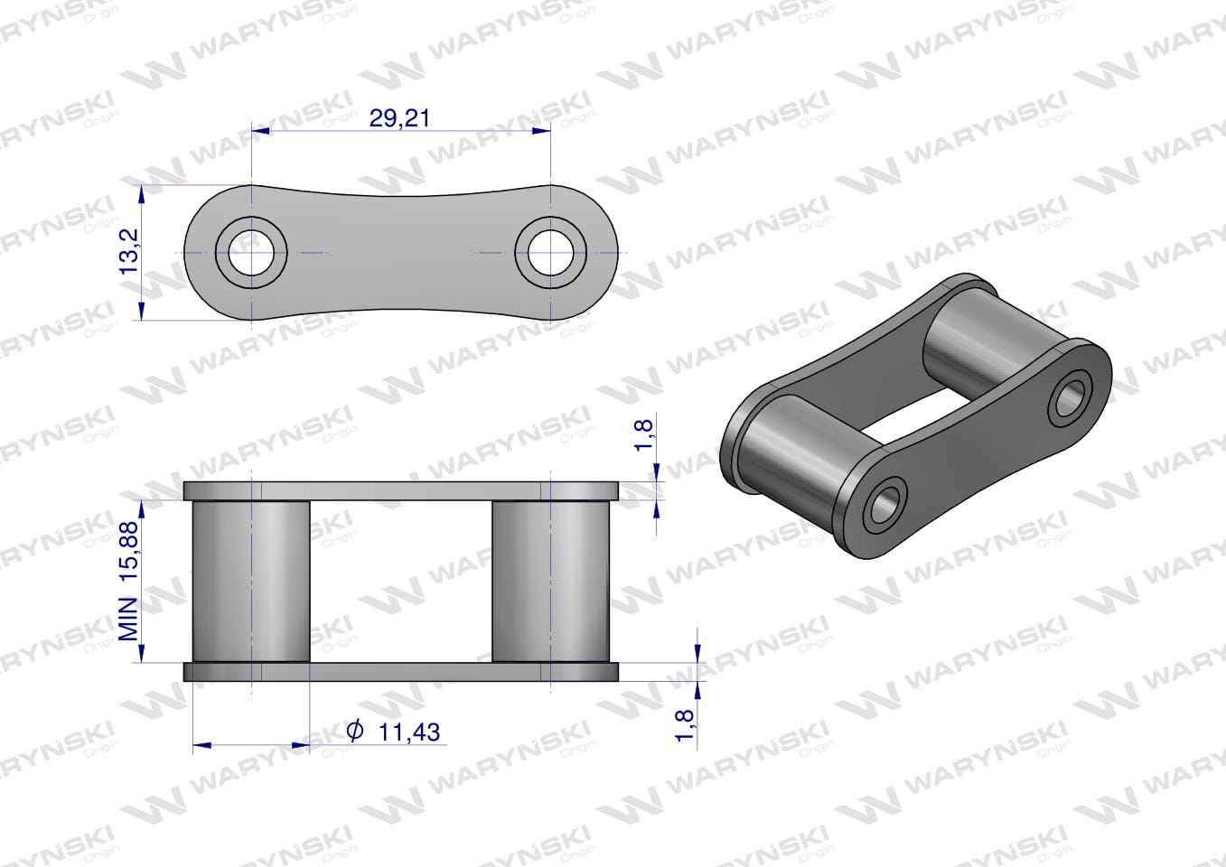 Podziałka : 29,21 mm,