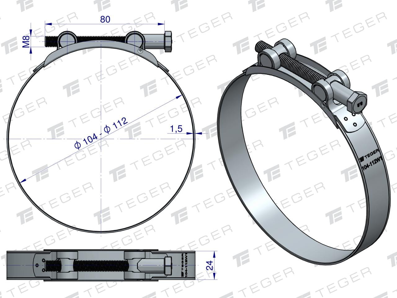 Opaska zaciskowa GBS 104-112 skręcana (obejma W1 - stal ocynkowana) szerokość 24mm TEGER