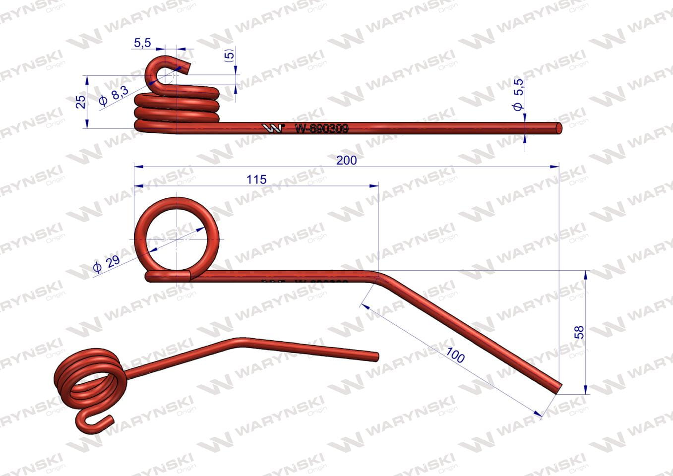 Palec sprężysty nagarniacza motowideł zastosowanie Claas 690309 Waryński