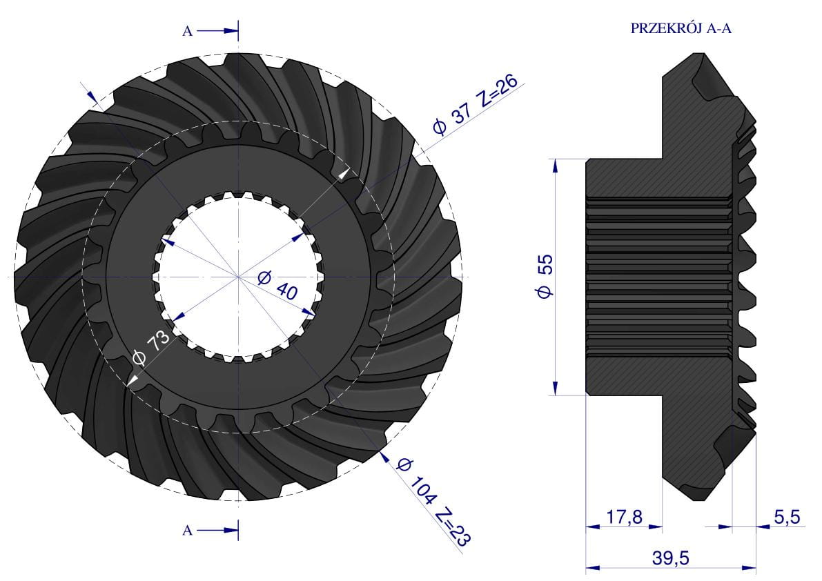 Para kół stożkowych E93125003 Kosiarka Czeska 508905049