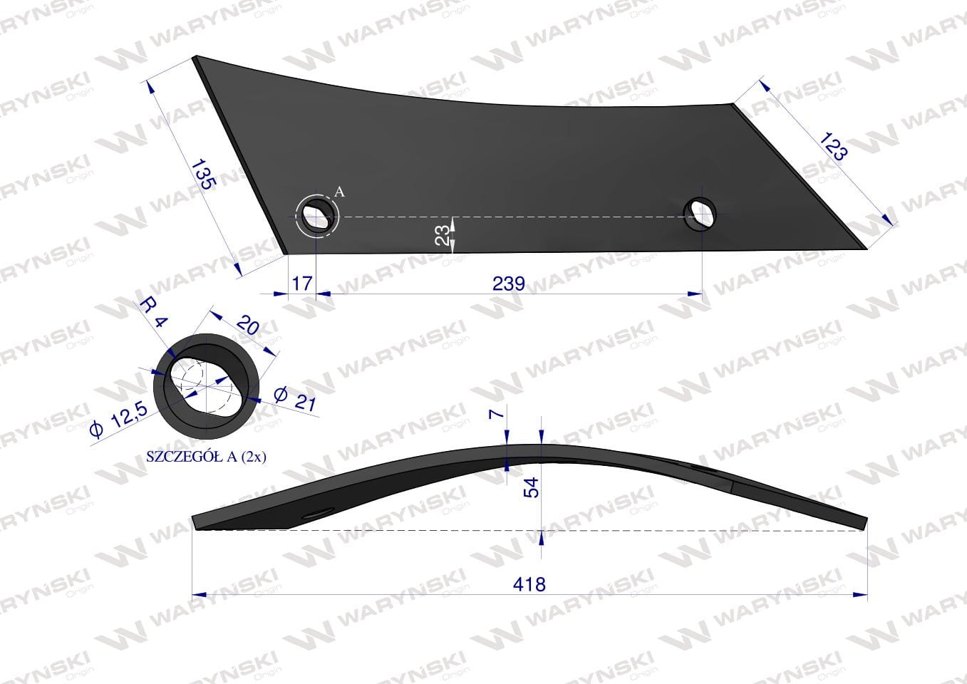 Części robocze marki WARYŃSKI wykonane są z niezwykle wytrzymałej i odpornej na ścieranie stali borowej pochodzącej z europejskich hut. Każda, nawet najmniejsza dostawa, posiada dołączony certyfikat potwierdzający skład materiałowy. Stal borowa posiada właściwości szczególnie przydatne w zastosowaniach konstrukcyjnych wymagających dużej wytrzymałości. Połączenie wysokogatunkowej stali borowej, monitorowanego procesu obróbki cieplnej oraz skrupulatna kontrola jakości produktów WARYŃSKI to gwarancja wydłużonego okresu eksploatacji. Produkty WARYŃSKI to oszczędność kosztów związanych z powolnym ścieraniem i zużyciem części roboczych. W trosce o trwałość naszych produktów oraz zadowolenie klientów proces produkcji lemieszy WARYŃSKI nie zakłada operacji spawania. Wszystkie rodzaje otworów są wykonane w specjalny sposób minimalizujący naprężenia oraz zmniejszający ryzyko pęknięć.