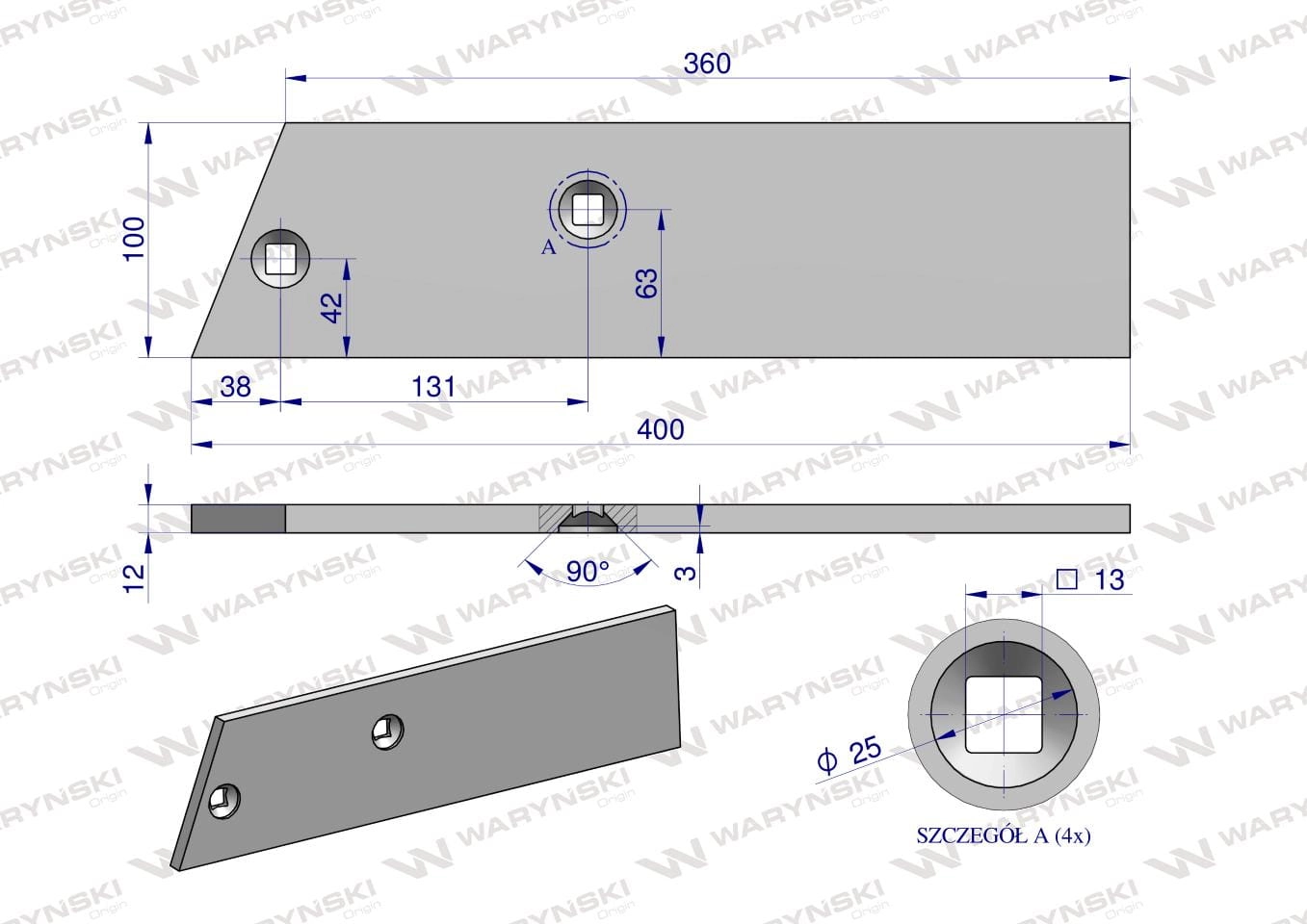 Części robocze marki WARYŃSKI wykonane są z niezwykle wytrzymałej i odpornej na ścieranie stali borowej pochodzącej z europejskich hut. Każda, nawet najmniejsza dostawa, posiada dołączony certyfikat potwierdzający skład materiałowy. Stal borowa posiada właściwości szczególnie przydatne w zastosowaniach konstrukcyjnych wymagających dużej wytrzymałości. Połączenie wysokogatunkowej stali borowej, monitorowanego procesu obróbki cieplnej oraz skrupulatna kontrola jakości produktów WARYŃSKI to gwarancja wydłużonego okresu eksploatacji. Produkty WARYŃSKI to oszczędność kosztów związanych z powolnym ścieraniem i zużyciem części roboczych. W trosce o trwałość naszych produktów oraz zadowolenie klientów proces produkcji lemieszy WARYŃSKI nie zakłada operacji spawania. Wszystkie rodzaje otworów są wykonane w specjalny sposób minimalizujący naprężenia oraz zmniejszający ryzyko pęknięć.