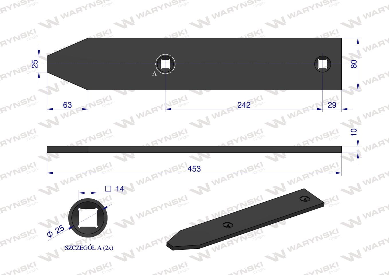 Płoza lewa praw uniwersalna zastosowanie Gregoire-Besson 172338 stal borowa WARYŃSKI
