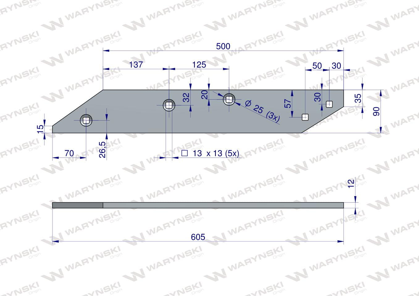 Części robocze marki WARYŃSKI wykonane są z niezwykle wytrzymałej i odpornej na ścieranie stali borowej pochodzącej z europejskich hut. Każda, nawet najmniejsza dostawa, posiada dołączony certyfikat potwierdzający skład materiałowy. Stal borowa posiada właściwości szczególnie przydatne w zastosowaniach konstrukcyjnych wymagających dużej wytrzymałości. Połączenie wysokogatunkowej stali borowej, monitorowanego procesu obróbki cieplnej oraz skrupulatna kontrola jakości produktów WARYŃSKI to gwarancja wydłużonego okresu eksploatacji. Produkty WARYŃSKI to oszczędność kosztów związanych z powolnym ścieraniem i zużyciem części roboczych. W trosce o trwałość naszych produktów oraz zadowolenie klientów proces produkcji lemieszy WARYŃSKI nie zakłada operacji spawania. Wszystkie rodzaje otworów są wykonane w specjalny sposób minimalizujący naprężenia oraz zmniejszający ryzyko pęknięć.