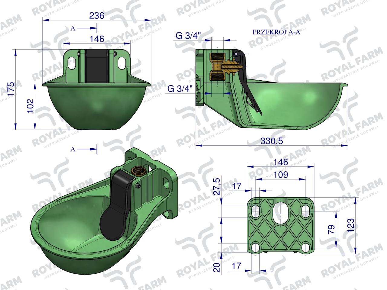 Poidło plastikowe dla bydła i koni 2.6 ROYAL FARM ( sprzedawane po 2 )