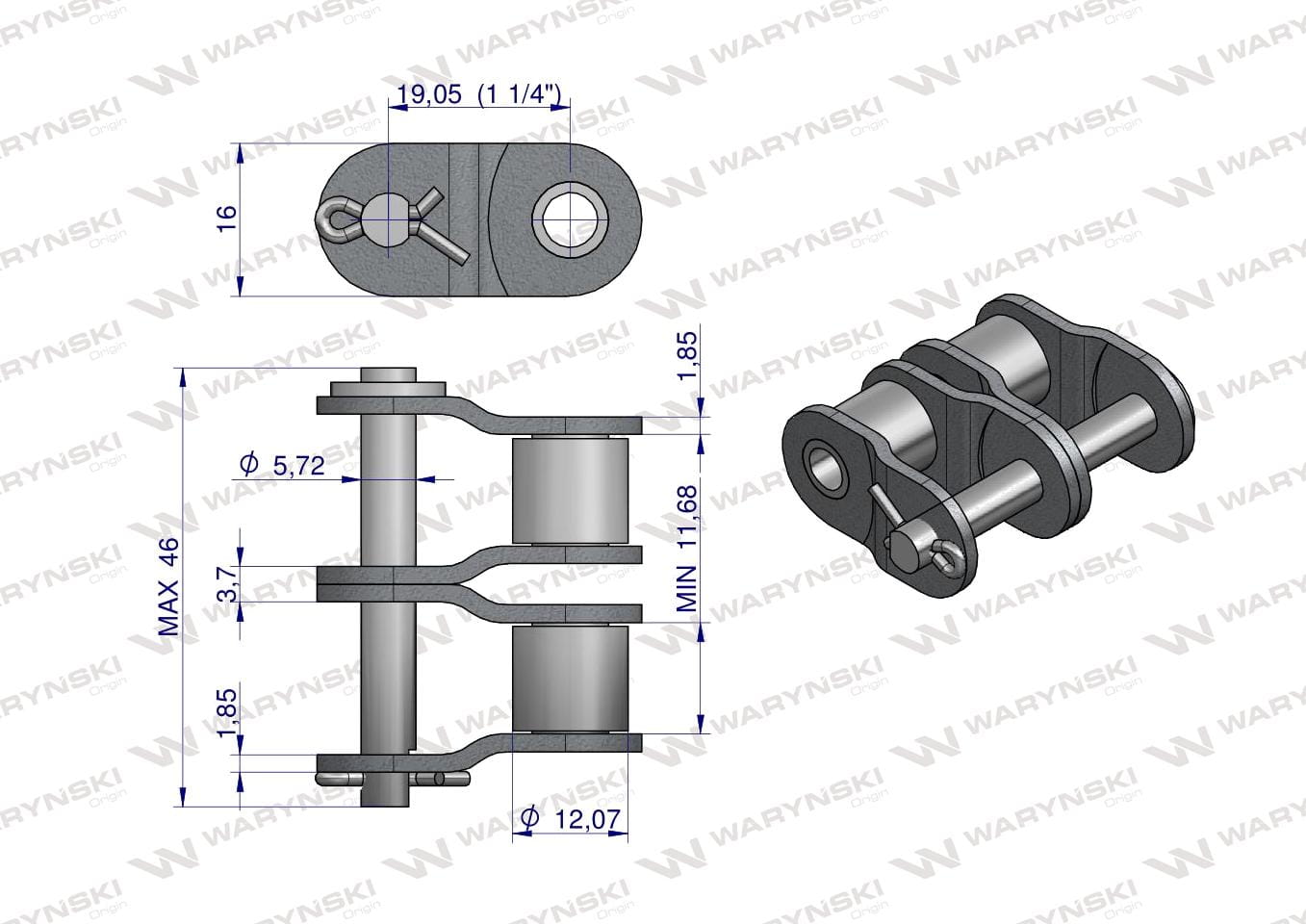 Półogniwo łańcucha 12B-2 (R2 3/4) Waryński ( sprzedawane po 10 )