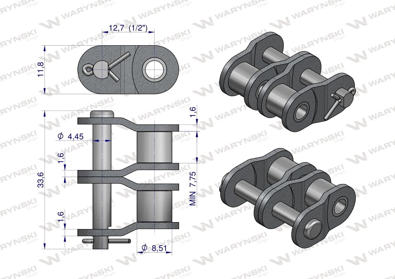 Półogniwo łańcucha prosta płytka P08B-2 (R2 1/2) Waryński ( sprzedawane po 10 )