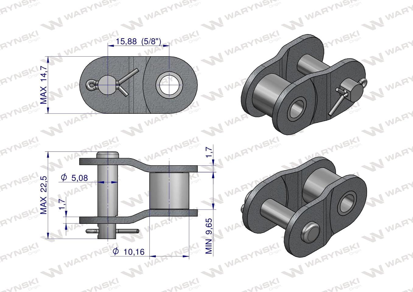 Półogniwo łańcucha prosta płytka P10B-1 (R1 5/8) Waryński