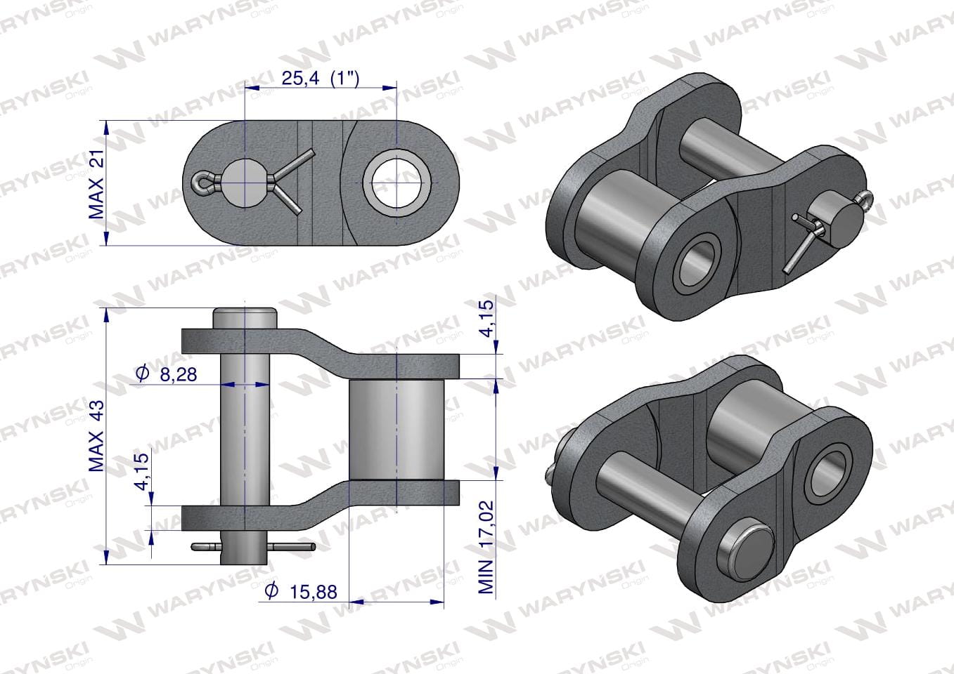 Półogniwo łańcucha prosta płytka P16B-1 (R1 1) Waryński ( sprzedawane po 10 )