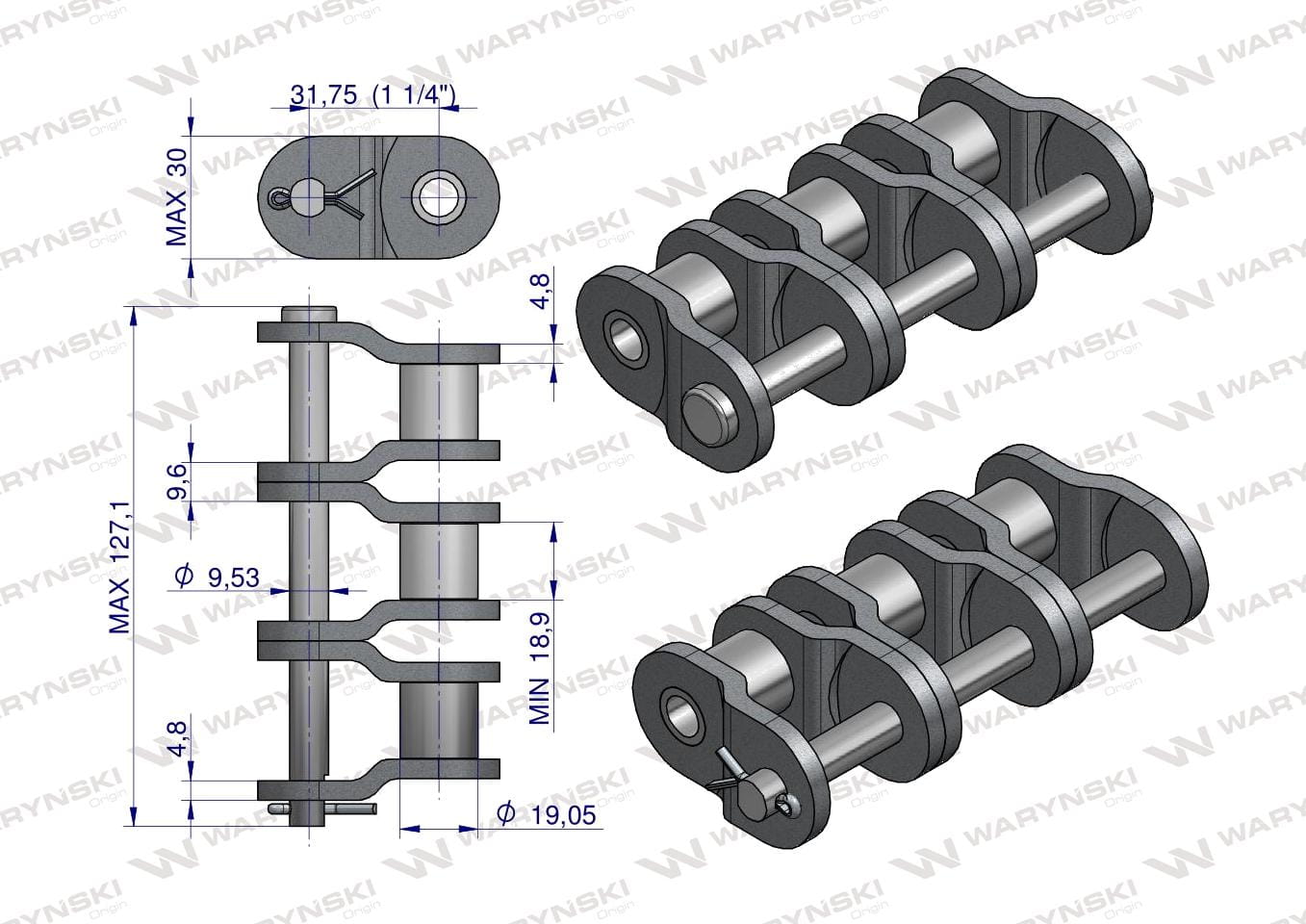 Półogniwo łańcucha przemysłowe P20AH-3 ANSI A 100H (R3 1.1/4) Waryński ( sprzedawane po 3 )