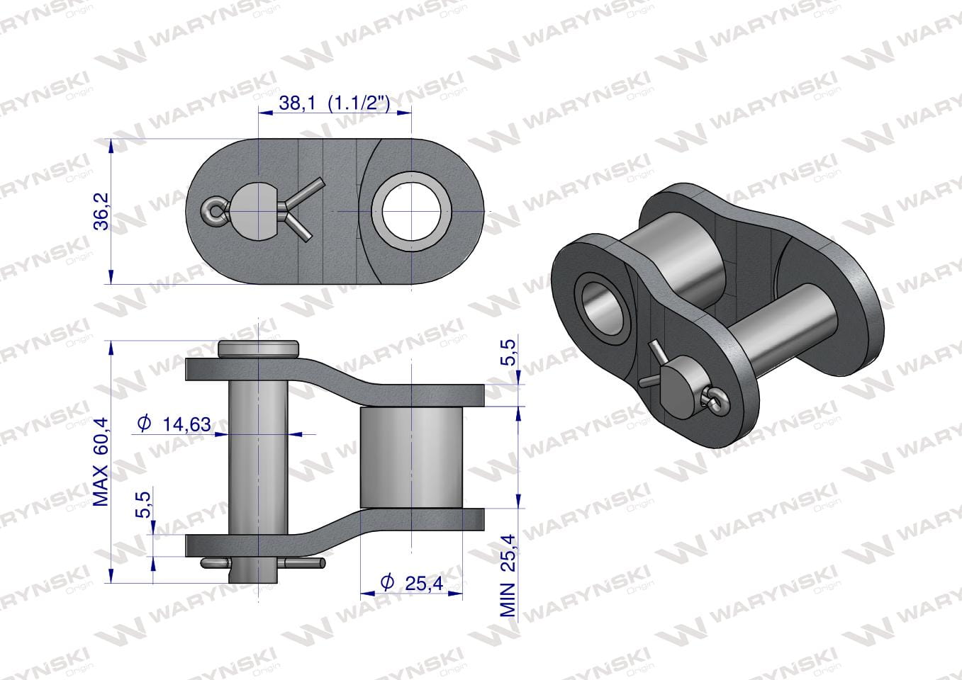 Półogniwo łańcucha przemysłowe P24AH-1 ANSI A 120H (R1 1.1/2) Waryński ( sprzedawane po 2 )