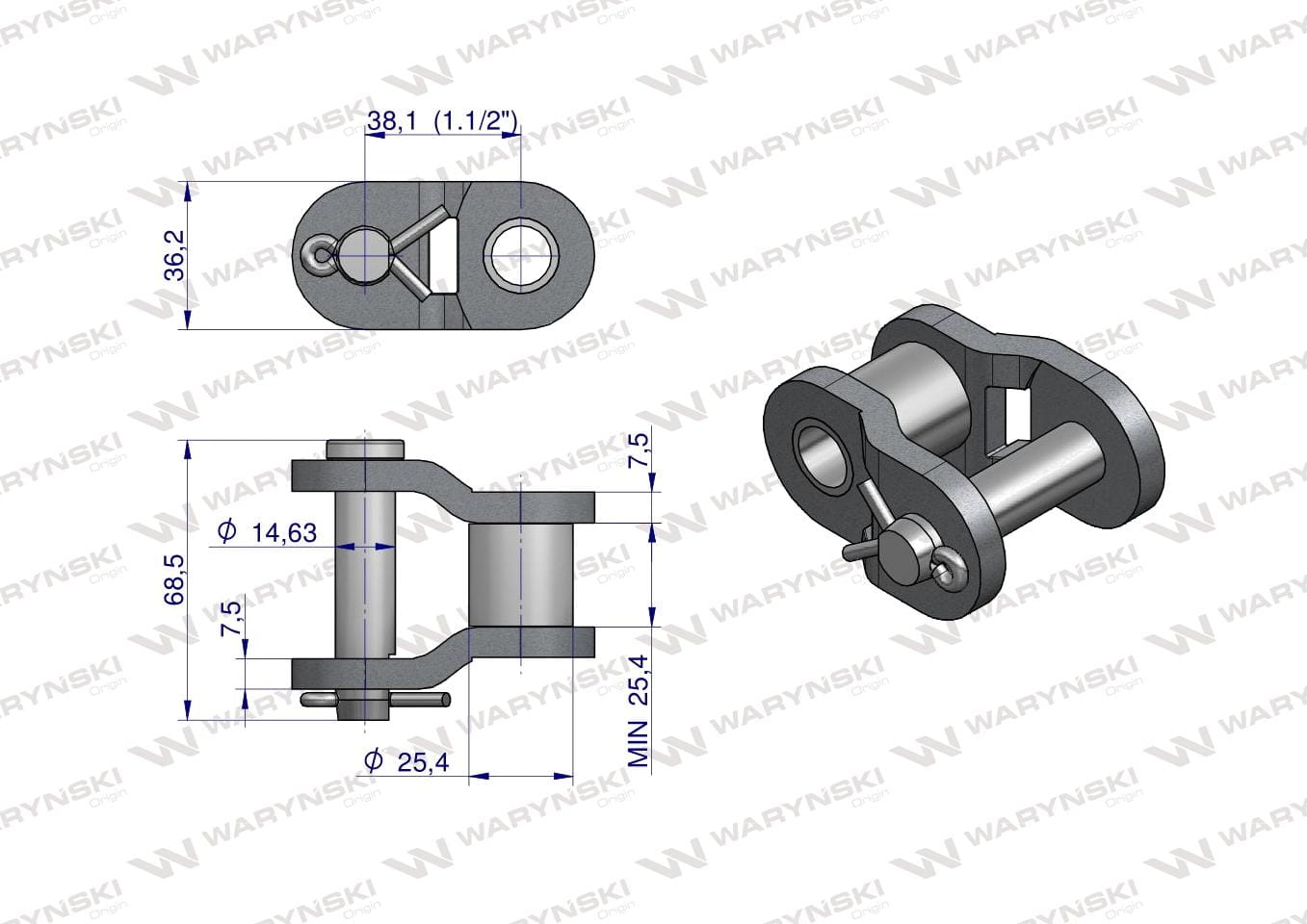 Półogniwo łańcucha wzmocnionego przemysłowego P24BH-1 (R1 1.1/2) Waryński ( sprzedawane po 1 )