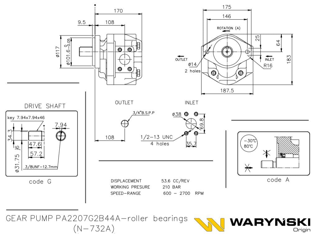 Pompa hydrauliczna N-732A JCB 3C/4C/3D11/3CSP6, 3CX, 1400 PA2207G2B44A Waryński