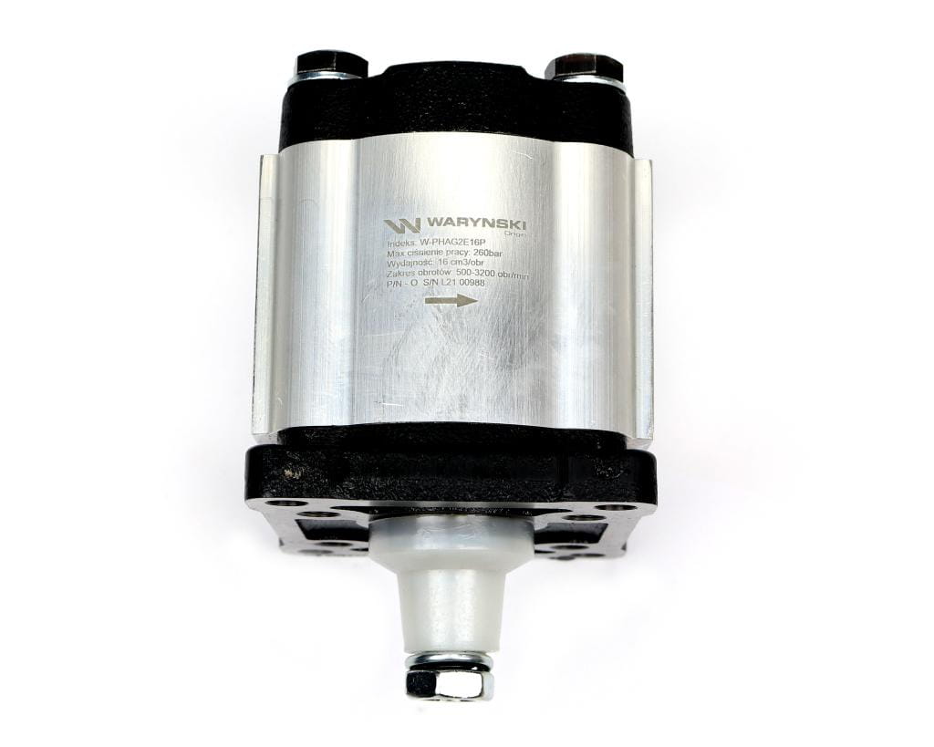 Pompa hydrauliczna, wzmocniona W-PHAG2E16P (wydajność: 16,0 cm3/obr.) Waryński. Pompy hydrauliczne 2-grupy Waryński dzięki niewielkim, kompaktowym wymiarom, oraz zwartej i wytrzymałej konstrukcji znajdują szerokie zastosowanie w wielu gałęziach przemysłu, rolnictwie, hydraulice mobilnej. Nasze pompy są dodatkowo wzmocnione żeliwnymi pokrywami - gwarantuje to długą i bezawaryjną eksploatację. Geometryczna objętość robocza pomp tej grupy mieści się w zakresie od 4 do 31 cm3/obr.