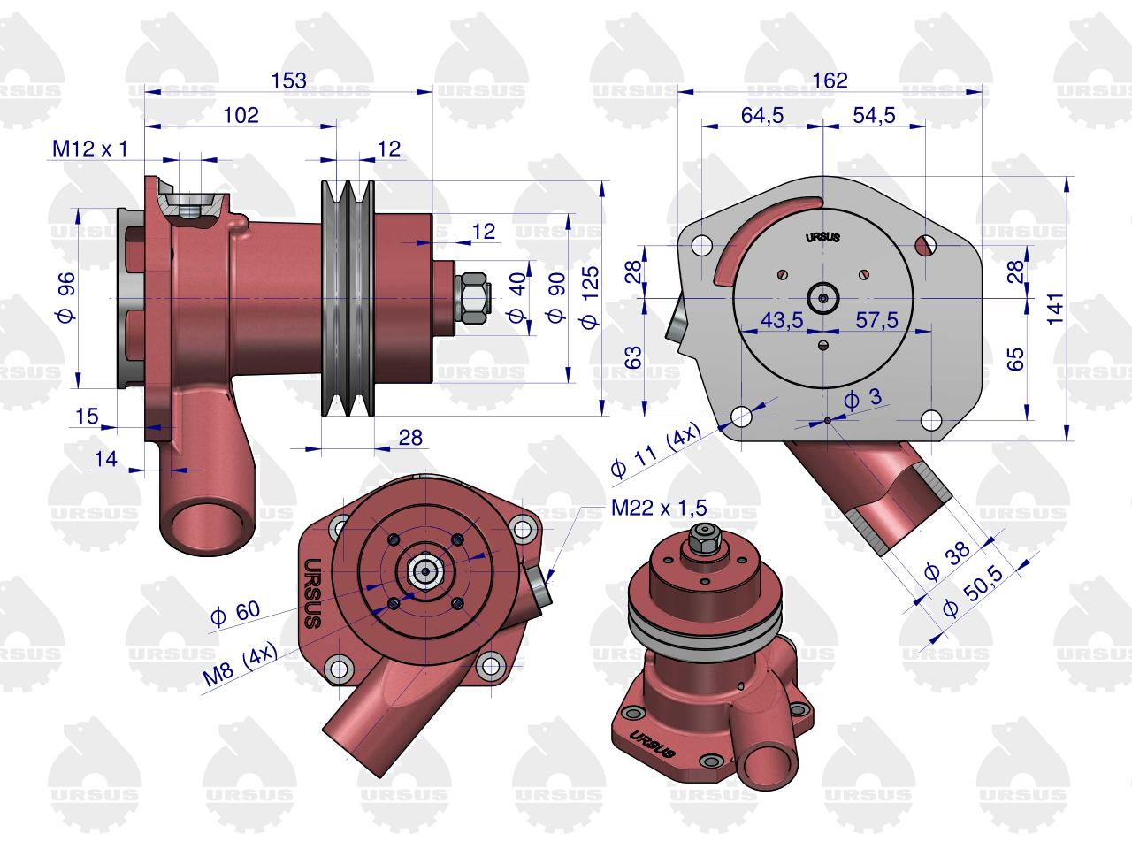 Pompa wody Wysoka II paski C-385 ORYGINAŁ URSUS