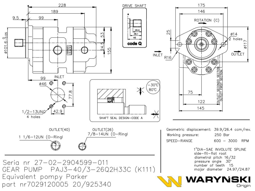 Pompa zębata K-111C JCB 4CX SITEMASTER, JCB 4x4x4 PAJ3-40/3-26Q2H33C Waryński