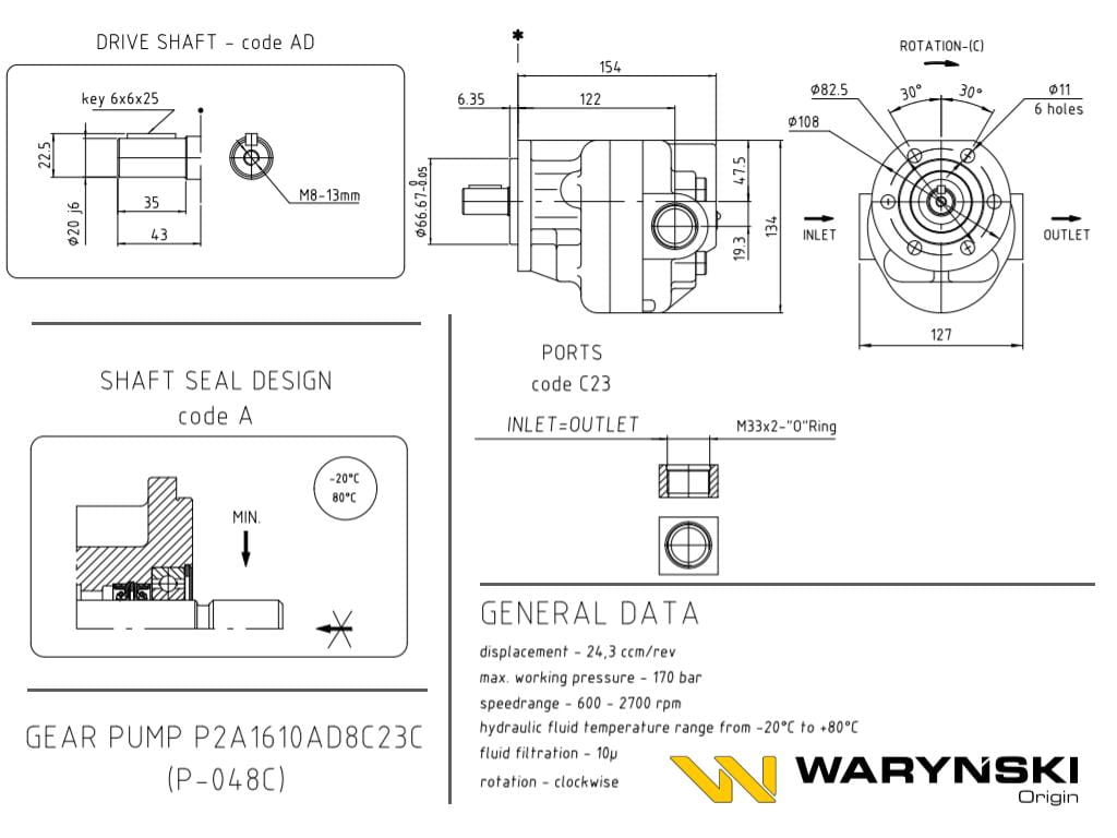Pompa zębata P-48C P2A1610AD8C23C obroty prawe podnośniki koszowe P-183 i P-184 Waryński