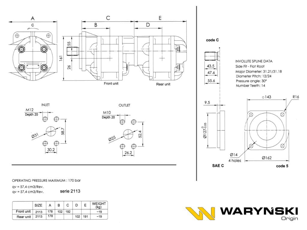Pompa hydrauliczna zębata 3.8cm3 (grupa 1 - typ europejski) wałek 1:8 przyłącza obustronnie gwinty wewnętrzne 3/8 (obroty prawe) max.260 bar Waryński 551,82 zł