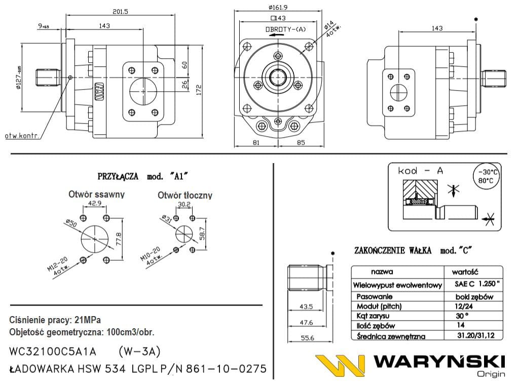 Pompa zębata W-003A HSW 534 ładowarka kołowa WC32100C5A1A Waryński