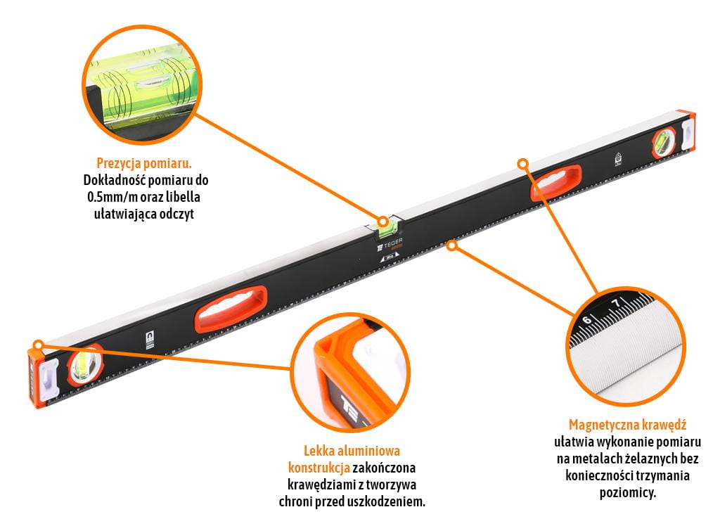 Poziomica aluminiowa/magnetyczna 120 cm Extreme TEGER