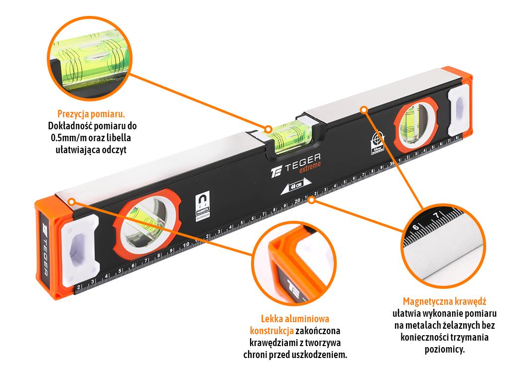 Poziomica aluminiowa/magnetyczna 40 cm Extreme TEGER