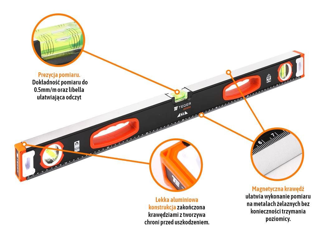 Poziomica aluminiowa/magnetyczna 80 cm Extreme TEGER