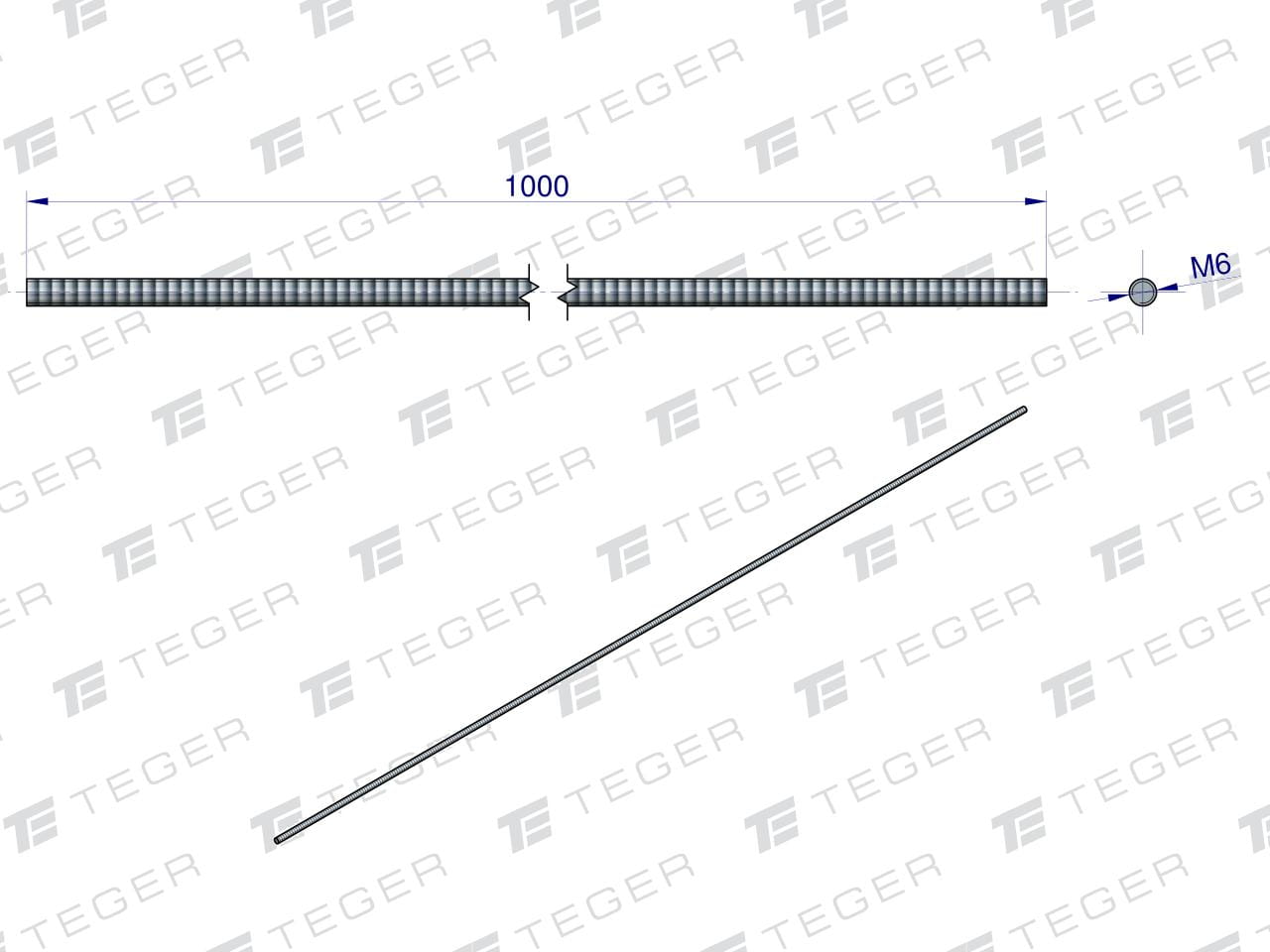 Pręt gwintowany M6 x 1000mm kl.8.8 DIN 975 ocynkowany TEGER