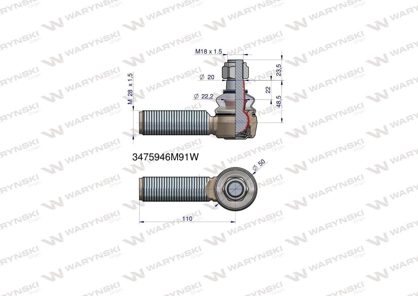 Przegub kierowniczy 110mm- M28x1,5 3475946M91 WARYŃSKI