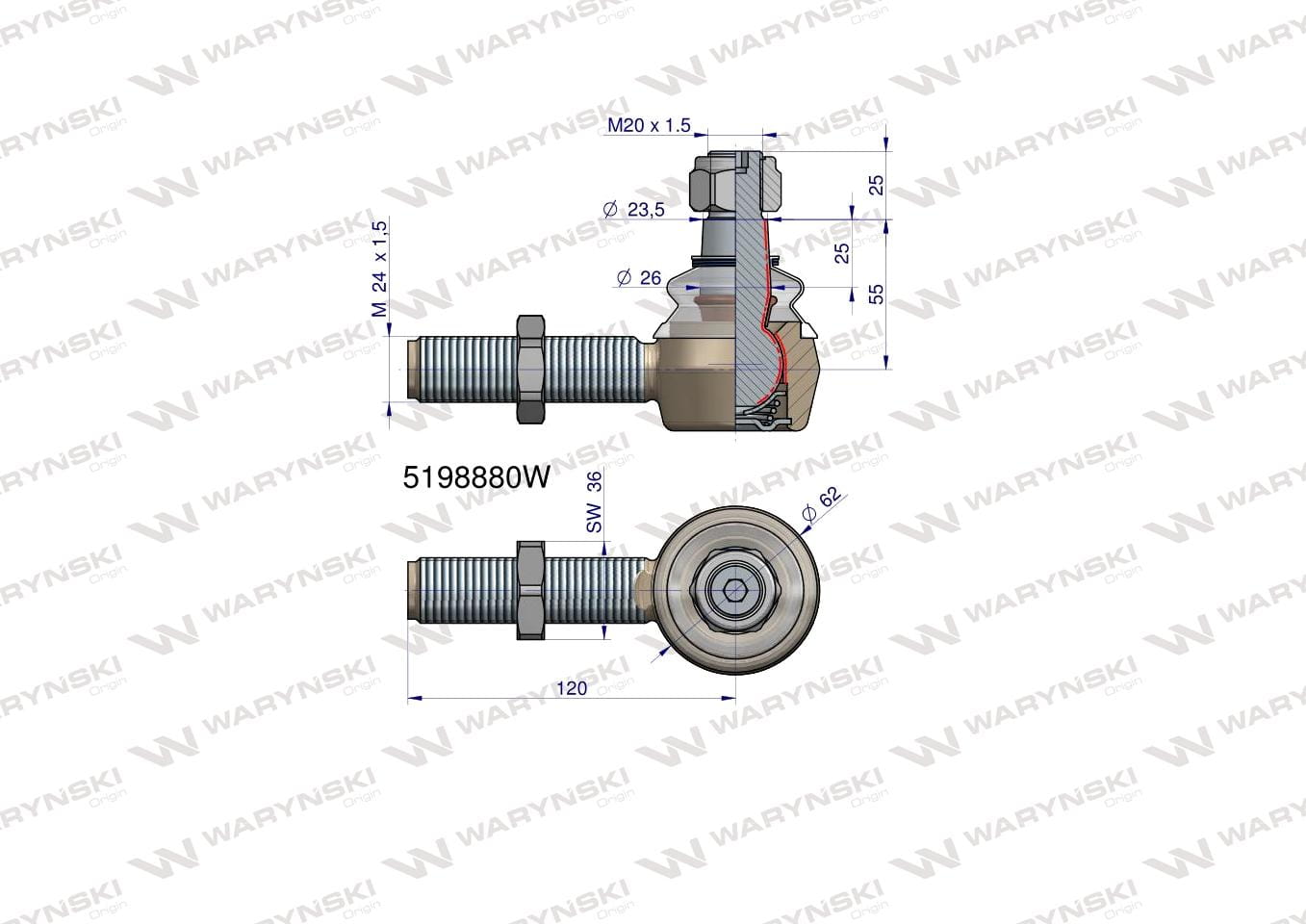 Przegub kierowniczy 120mm- M24x1,5 5198880 WARYŃSKI