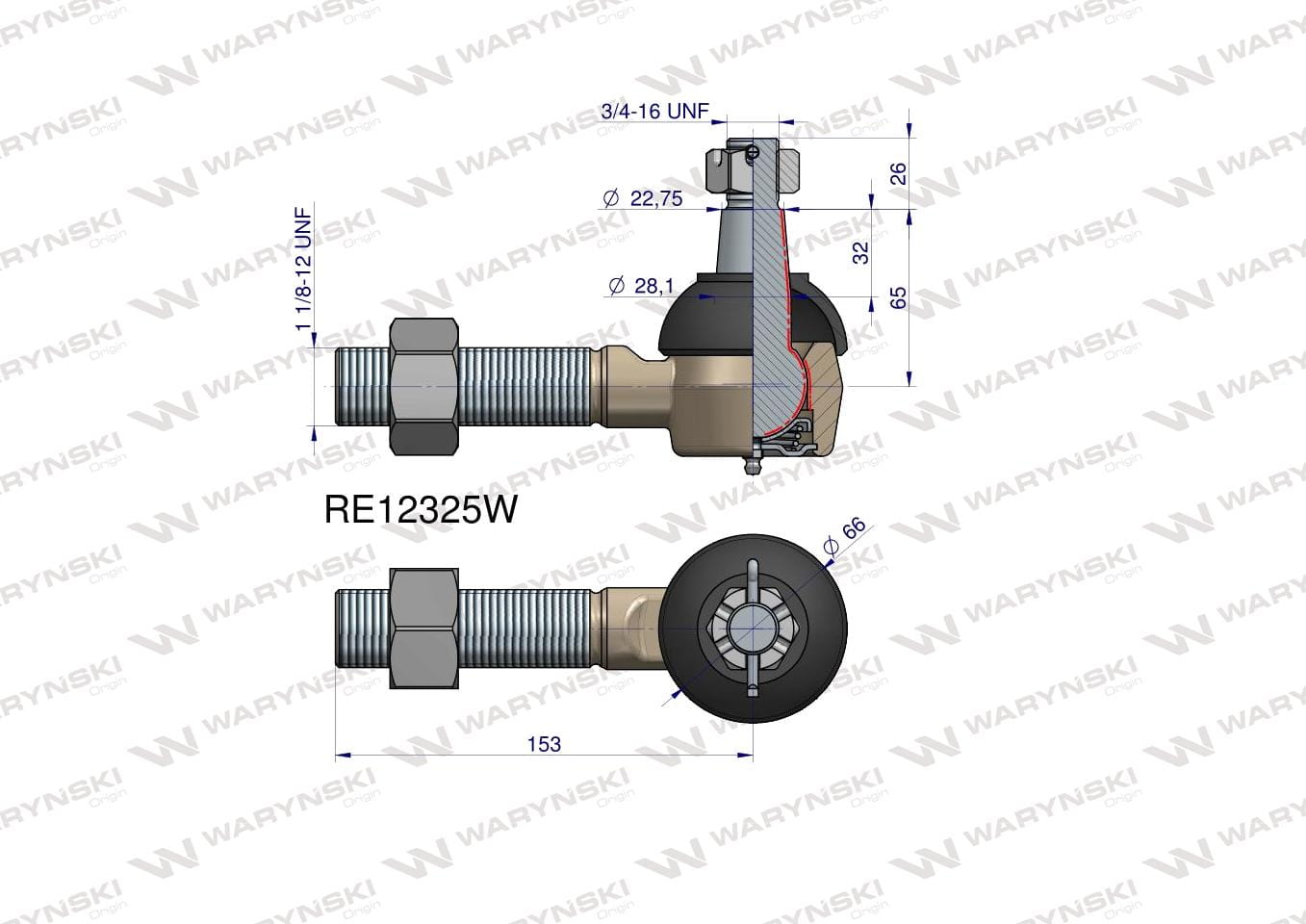 Przegub kierowniczy 153mm- 1 1/8-12 RE12325 WARYŃSKI.