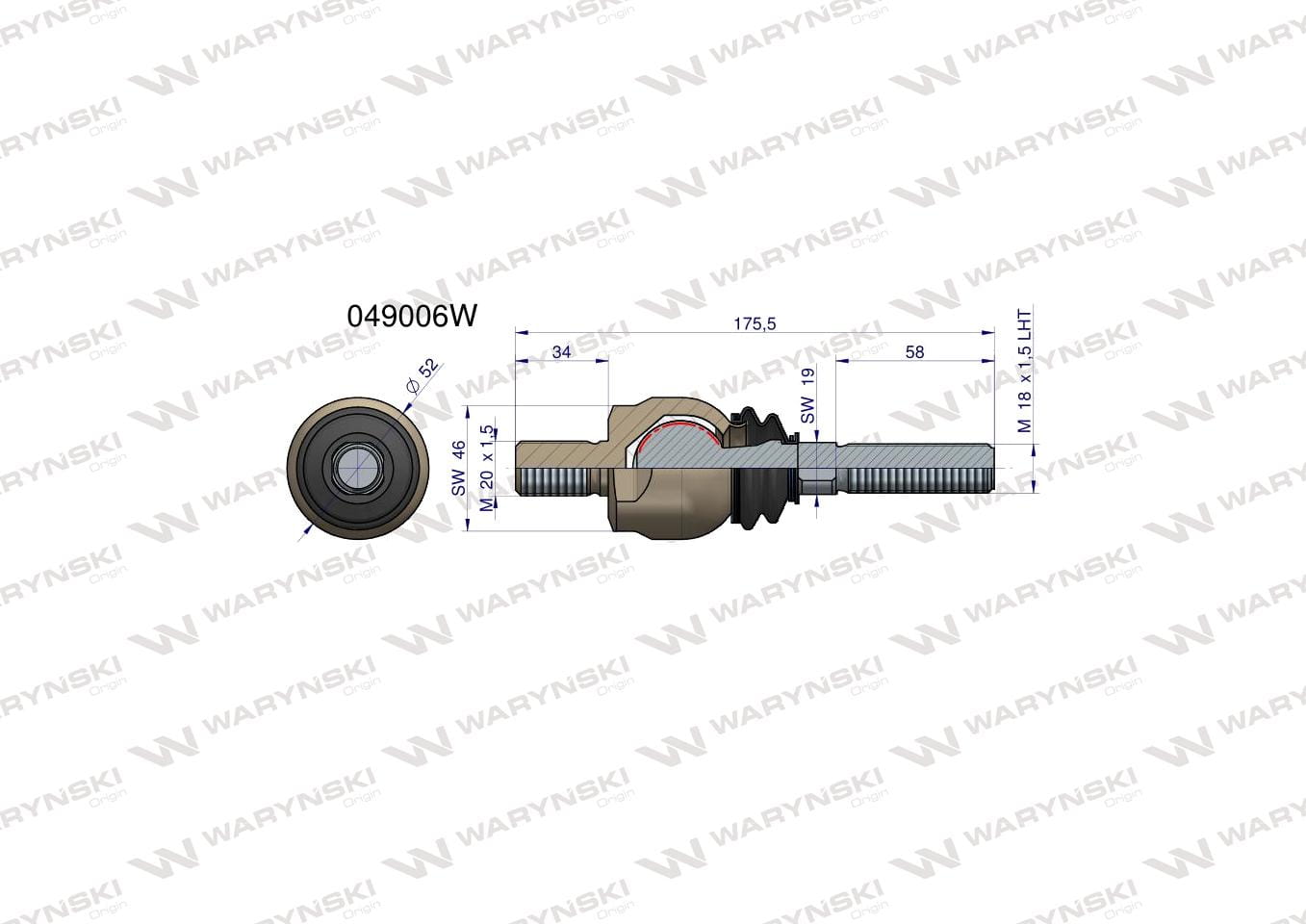 PRZEGUB KIEROWNICZY 175,5MM - M20X1,5 P; M18X1,5 L 049006 WARYŃSKI
