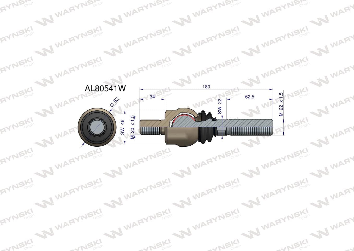 Przegub kierowniczy 180mm- M20x1,5; M22x1,5 AL80541 WARYŃSKI