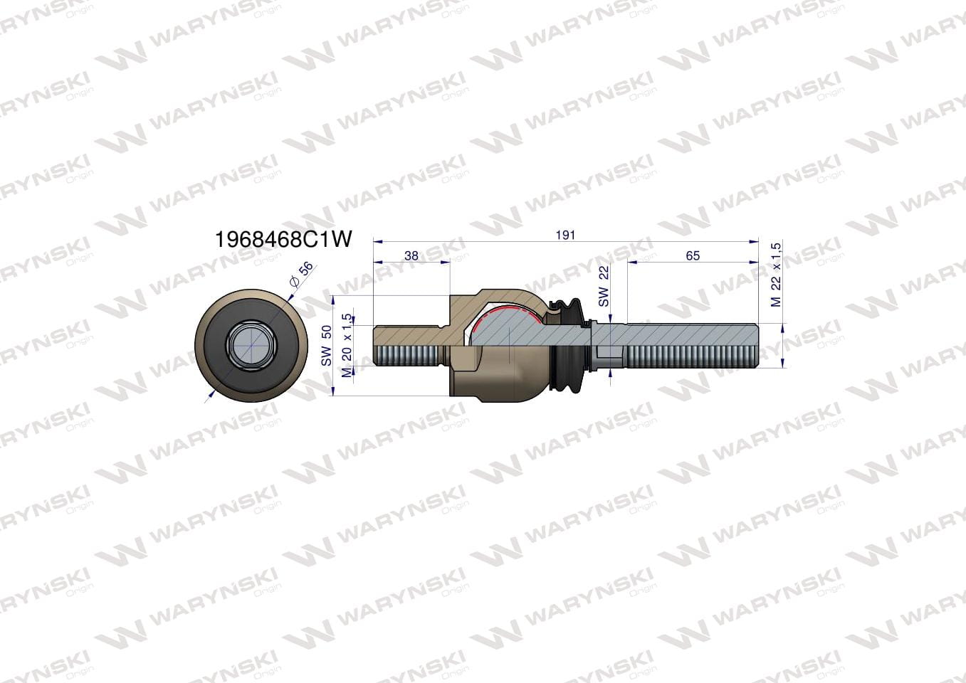 Przegub kierowniczy 191mm- M20x1,5; M22x1,5 1968468C1 WARYŃSKI