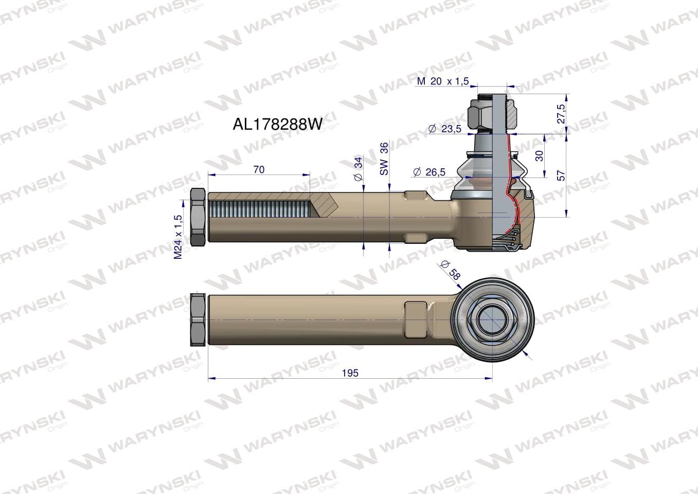 Przegub kierowniczy 195mm- M24x1,5 AL178288 WARYŃSKI