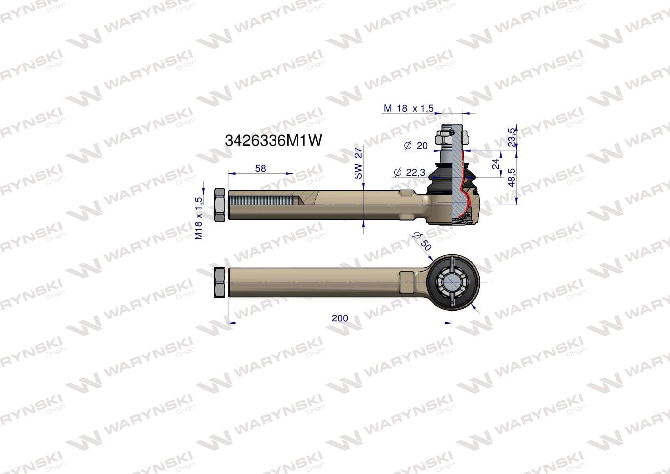 Przegub kierowniczy 200mm- M18x1,5 3426336M1 WARYŃSKI
